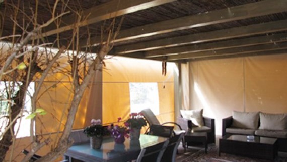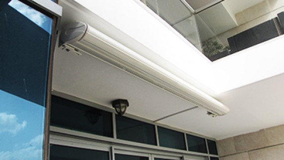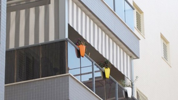 סוכך היורד בצורה אנכית ומספק הצללה איכותית מפני השמש. מתאים למרפסות